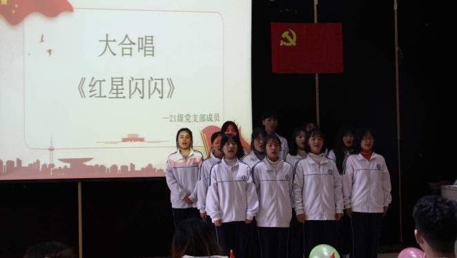 会议伊始,全体成员奏唱国歌。紧接着,由陈忻宇同志带领23期预备党员进行入党宣誓,庄严的誓词彰显每一位党员同志入党的决心。尔后,由景博文与陈艺萱同志带来了政治学习,了解过去100年来,党领导人民取得的历史性成就。随后,进入知识问答环节,各组同志积极参与,使我们了解到祖国建设中许多具有历史意义的时刻。紧接着,由20级1班入党积极分子带来的诗歌朗诵--《党的颂歌》,歌颂了党指引我们前进取得的伟大成就。随后,来到了有趣的游戏环节,同志们积极参与,现场欢笑连连。尔后,由21级部门新成员带来了歌曲《红星闪闪》,动人的旋律唱出久远的过去。活动接近尾声,第一党支部书记李清敏老师总结到我辈青年应当勿忘昨天的苦难辉煌,无愧今天的使命担当,不负明天的伟大梦想。最后,伴随着庄严的国际歌,以“学习全会精神,争做时代新青年”为主题的党日活动圆满结束。