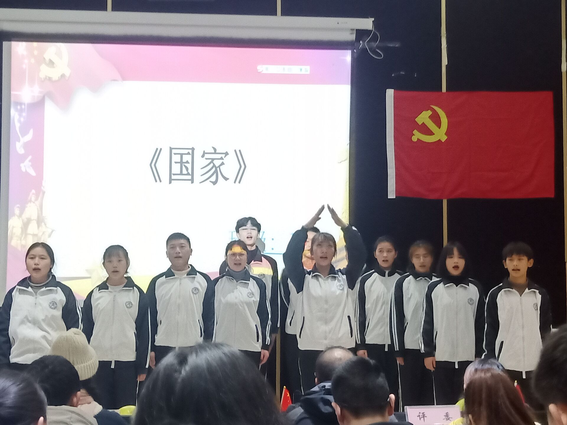 会议开始,由主持人介绍本次红歌比赛的背景、活动目的和比赛规则等事项。活动以员工党支部20级成员带来的《国际歌》拉开了本次红歌比赛的帷幕。紧接着,18级和19级入党积极分子分别以《我们走在大路上》、《国家》、《弹起我心爱的土琵琶》等曲目依次上台比赛。雄壮燎亮的歌声响彻会场内外,精彩的合唱赢得了台下评委和观众的阵阵掌声。经评委现场打分,由主持人宣布了获奖结果:19级2班、19级3班、19级1班和18级1班分别荣获一、二、三等奖和优秀奖。比赛结束后,由评委分别为获奖班级颁发奖品并合影留念。会议最后,全体起立以一首高亢激昂的《国际歌》落下帷幕。