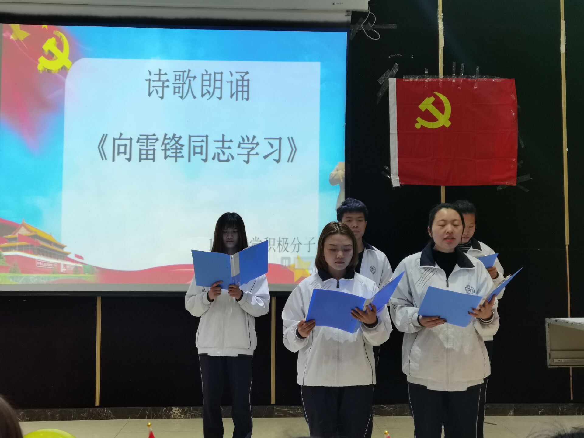 活动开始,全体起立奏唱国歌,主持人宣布活动开始。紧接着由谢雨彤和冯文嘉同志带来了政治学习,带领大家学习弘扬雷锋精神的内涵。随后,18.3班的入党积极分子带来了诗朗诵《向雷锋同志学习》,他们声情并茂,将全场氛围推向高潮,雷锋同志助人为乐的画面仿佛出现在了眼前。尔后,全体成员观看了学习雷锋精神的视频,部分入党积极分子积极分享了自己的感想。随后,在知识问答环节,同志们也都踊跃参与。紧接着,为了传承川剧变脸文化,20.3班谷大鹏同志带来了变脸表演《巴蜀神韵》,出色的表演不禁让在场所有人发出感叹,让我们领略了非物质文化遗产的深邃魅力。然后进入了激动人心的游戏环节,现场欢笑声连连不断。最后,全体成员起立奏唱国际歌,活动圆满结束。