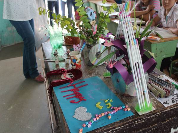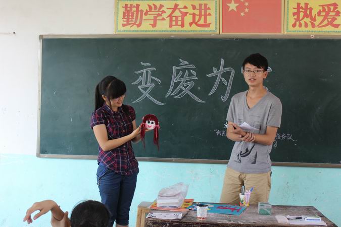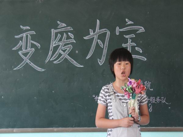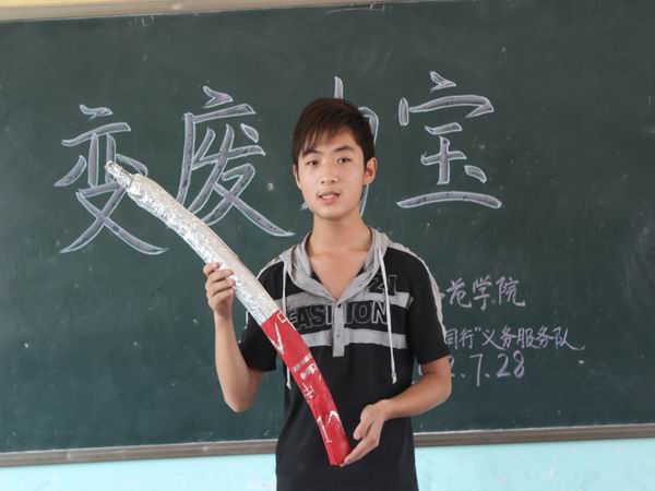 指尖溢出梦想,行动创造奇迹。7月28日三点半,为了让孩子们从小学会思考如何与环境和谐统一发展,丰富他们的想象力和创造力,全面提升综合素质。公司生科公司“创先争优—雷锋同行”服务队在资中县配龙中学举行“变废为宝”手工制作大赛。由本队的志愿者们担任活动的评委。
