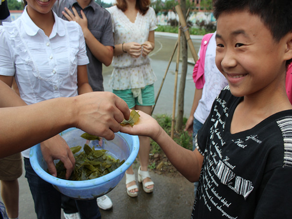还有最具志愿者们专业特色的“认植物”、“学做标本”课外活动。员工们说以前从来没有去校外的课,更不知道那些杂草和小树竟然叫“龙葵”、“景天”、“紫薇”等。当孩子们高兴地采回自己喜欢的植物,学者志愿者们给植物去土、除杂叶等,所有的人都明白孩子们又进步了。最后,志愿者们帮助孩子们帮标本夹在报纸里压好后,孩子们不约而同的掌声确实让我们感动了一番。