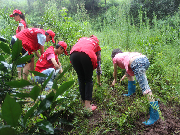 7月21日和7月27日,为了能够减轻农民的压力,我队全体志愿者利用支教的空余时间分别前往地里和场坝帮助农民们除草和晒玉米(特别是帮助劳动力不足和劳动主力年纪较大的家庭。)