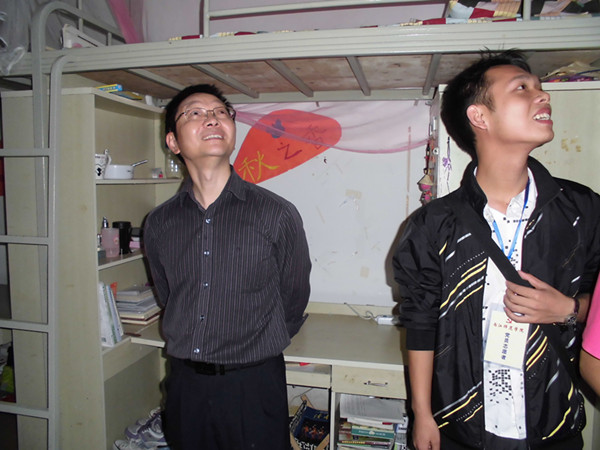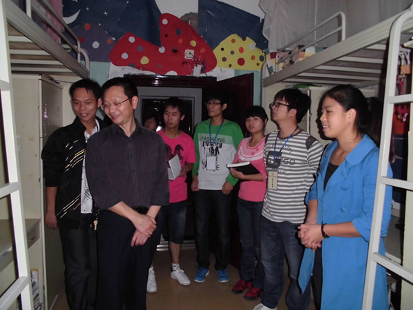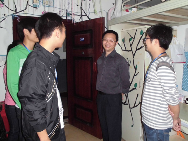 首先,我们来到17幢130。寝室的同学们都热情的接待我们,并给我们介绍寝室的情况。段辉国书记说:“首先寝室的清洁卫生和东西的摆放是最重要的,有了好的生活环境才能够更好的生活和学习。其次,寝室的文化氛围一定要浓,这样能够促进寝室同学们的和谐与共同学习、共同进步,并以此带动全院的寝室文化建设”。接下来,我们去了17幢202寝室。段辉国书记的亲切话语,让同学们畅所欲言,段辉国书记鼓励他们说有想法是好的,有想法就有进步的空间。紧跟着我们又走访了204、212、等几个寝室。通过与同学们的交流中,我们发现了一些寝室存在的问题,同时也给了他们一些建议。最后,段辉国书记说:“学习是很重要,但是要注意劳逸结合,在课余时间也要多参加一些户外运动”。