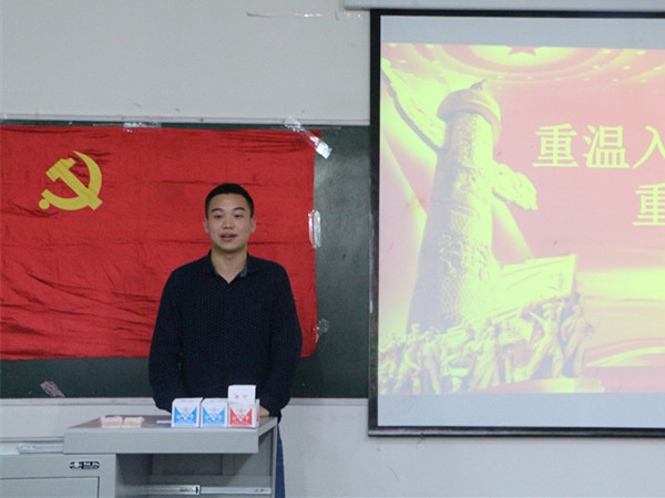 在第一党支部书记吕小琴的主持下,本次活动徐徐拉开了帷幕。活动伊始,全体人员肃立,奏唱国歌。随后,由吕小琴同志为我们讲解了作为一名合格党员,应具备的基本素养:“两学一做”,即:学党章党规,学系列讲话,做合格党员。为了让同志们牢记自己之前入党前的铮铮誓言,由罗玲同志带领大家宣誓。在座的预备党员、党员面对鲜红的党旗,郑重举起右手,庄严地向党宣誓,誓词声声,表达了党员们为共产主义事业奋斗终身、永葆党员先进性的坚定信念。宣誓后,在座的同志们都写下了自己入党的初衷以及自己的理想与信念。预备党员罗国涛同志积极发言,用诙谐幽默的字眼讲述了自己的理想和对未来的规划。他还强调作为一名老员工,仅仅靠语言上的爱党拥党是远远不够的,要落实到行动上去。而作为党员的张韵同志也不堪落后,她提出一名合格的党员不仅要具备实践能力,也要重视自己的学业成绩。现阶段的同志们有的在积极准备考研,有的在忙于找工作,但是不管怎么样,只要实现了自己的理想和目标,就可以了。