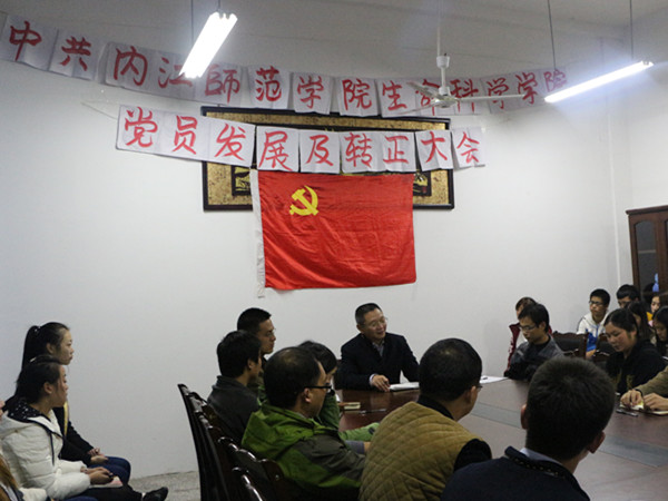 会议由沈伟同志主持。庄严的国歌拉开了大会的序幕,首先作为入党积极分子的卢佳,吴迪,蒲宗旺等15名同志分别从家庭、学习,生活以及思想方面对自己的基本情况作了汇报,不管是在工作上,还是学习上,他们都用共产党员的标准严格要求自己。他们的介绍人也对他们的努力表示了肯定,同时对他们的缺点也提出了批评指正。最后,该15名同志经过了21位党员代表投票,全票通过了党组织的审核,被党组织吸纳为预备党员。接下来,张静、李飞扬、洪菊等9位预备党员的进行了转正思想汇报,经过了一年的考核期,他们在学习和工作上都取得了优异的成绩,积极参与实践活动,政治思想积极向上,不断增强自身的党性修养,努力向党员靠齐。会议中,作为介绍人的李清敏老师、李斌老师等也对他们表示了肯定,同时也提到,党员一定要具有先进性和带动性,希望同志们珍惜预备党员和党员这个荣誉,努力锻炼自己的能力,成为最优秀的党员同志,为党和人民作出贡献。最后该9名同志正式成为中国共产党党员。最后,段书记对此次会议进行了总结,并对以上同志提出了建议:党员的意识不应只停留在“三个代表”,要与时俱进,掌握党的最新动态,并强调党员应有先进性,在工作和学习中要有带动性,充分发挥党员的模范带头作用,全面提高自身综合素质,以严格的标准的要求自己,做一名合格的共产党员。