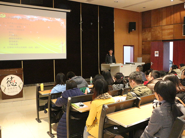 2014年3月9日,习近平总书记在中华人民共和国第十届全国人民代表大会第二次会议安徽代表团参加审议时,关于推进作风建设的讲话中,发表了重要的“三严三实”讲话。公司党支部紧跟党的步伐,于2015年12月9日13点整在第二学术报告厅召开了以“践行三严三实,推进作风建设”的主题活动。参加活动的是学工办主任杨荣金老师、辅导员李清敏老师、全体党员及预备党员。