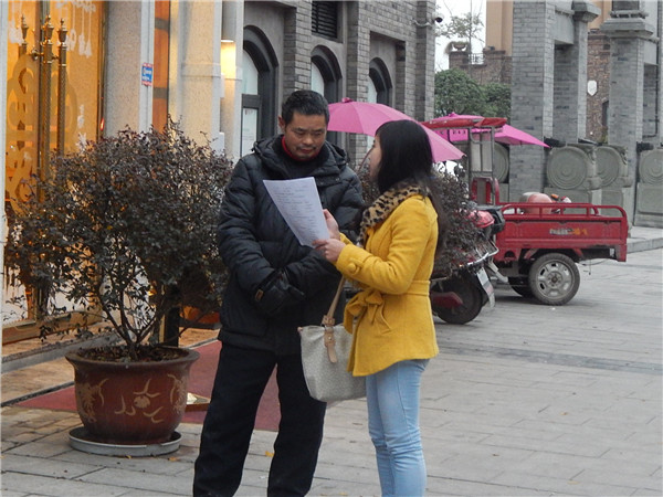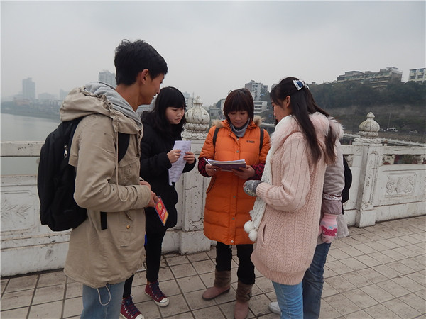 在此次活动中,根据人数平均分为两个小组分别前往大千公园、大洲广场进行2013年廉政文化问卷调查。不管是冬日的严寒,还是路人对此次调查的质疑,都没有一个人就此放弃了调查的热情,大家都热情昂扬的奔忙着。他们的足迹印在内江的土地上,而此次活动却深深的镌刻在了内江人的心中。本次活动一直持续到6:30,才在夜幕的降临中宣告结束。