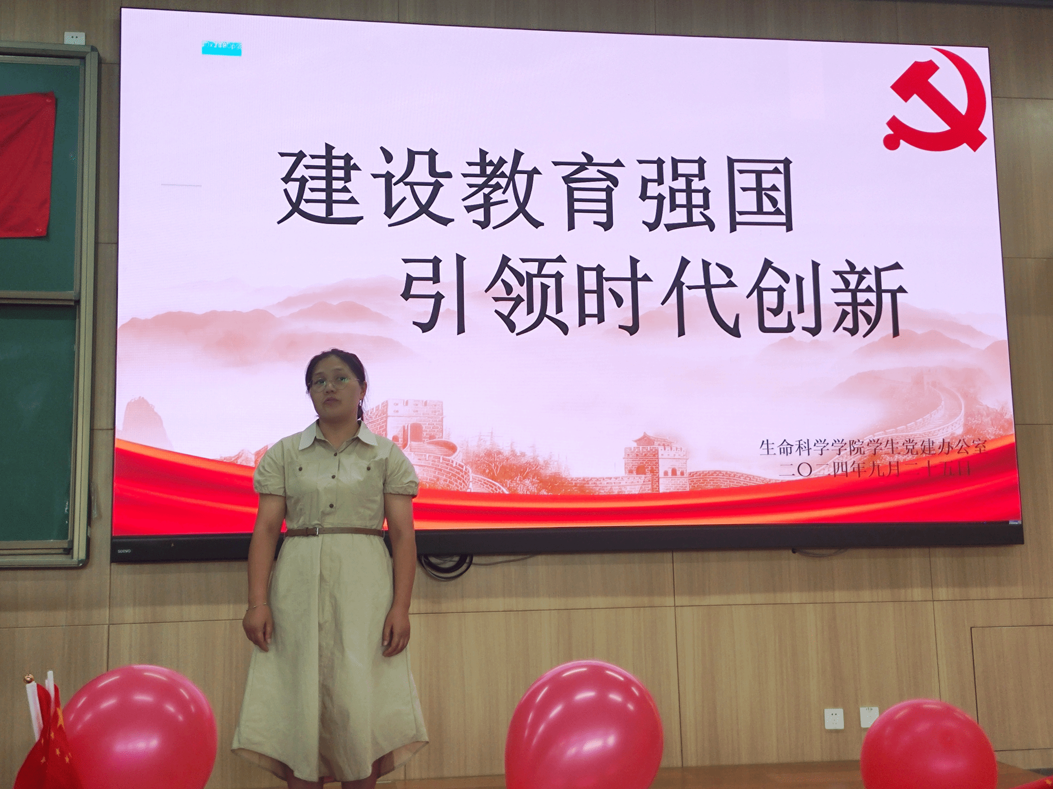 2024年9月25日,生科院员工党支部在明德楼B111成功召开以“建设教育强国,引领时代创新”为主题的党日活动。员工党支部书记卓武燕和胡慧同志,2022级和2023级各班预备党员以及入党积极分子参加此次活动。