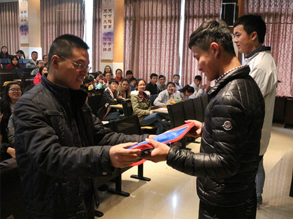 青年最富有朝气、最富有梦想。近代来,我国青年不懈追求美好梦想,始终与振兴中华的历史进程紧密联系。在革命战争年代,广大青年满怀革命理想,为争取民族独立、人民解放冲锋陷阵、抛洒热血。为响应党的号召,纪念“一二·九”员工爱国运动80周年,公司于12月9日12点40分在第二学术报告厅举办以“弘扬爱国心,勿忘一二·九”为的主题党组织生活会。参加本次活动的嘉宾有学工办主任杨荣金老师、辅导员李清敏老师、全体党员、预备党员、入党积极分子以及支部成员。 雄壮的国歌沸腾着心中的热血,我们的活动正式拉开帷幕。为了解各位同志对一二·九历史背景的熟知程度,各班派出代表参加知识竞赛。必答题、抢答题分分必争,一系列的激烈角逐,最终有三个班级胜出,分别获得一、二、三等奖,其中15级3班勇夺桂冠。杨荣金老师为他们颁奖并合影留念。与此同时,大一的同志们也为我们带来了诗朗诵《和平宣言》,带我们回顾那时壮志豪情,历史和现实都告诉我们,青年一代要紧跟时代步伐,青少年是祖国的未来、民族的希望。紧接着,杨连雄同志和陈祥蕊同志为我们播报了近期的时政要闻,作为老员工,我们更应坚持面向现代化、面向世界、面向未来,增强知识更新的紧迫感,不断提高自身的素质和能力。随后,吴迪同志带领预备党员作入党宣誓,铮铮誓言激荡人心,这是他们作为预备党员永不叛党的坚定信念,这是他们誓将先辈坚韧不拔精神发扬光大的决心。 随着时间的流逝,我们的活动接近尾声。由李清敏老师为本次活动做总结,她指出国家建设紧拽在当代青年的手上,望同志们能严于修身,用共产党员的标准来严格要求自己。少年强则国强,民族的兴衰与我们息息相关的,实现我们的发展目标,不仅需要锲而不舍的奋斗,还需要努力创新、拼命革新,不断开辟发展事业的新天地。泱泱千年中华神州,绵绵万里壮丽山河,期待着在我们这一代人为之天上浓墨重彩的一笔!