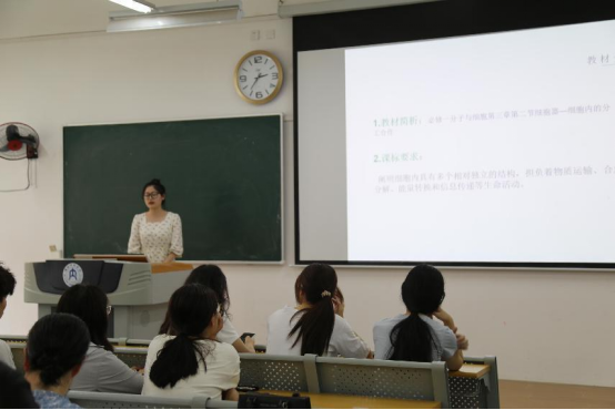 本次“模拟授课”分为3分钟说课、10分钟模拟授课和2分钟的评委提问三个环节。比赛过程中,选手们以高中生物必修教材内容为授课内容,通过精心设计的教学活动、精美的课件、条理清晰的板书、娴熟的教学技能,特别是丰富多彩的思政元素,展示了生物科学专业师范生的风采。学科教学论教师付伟丽对参赛选手的精彩授课进行了点评。