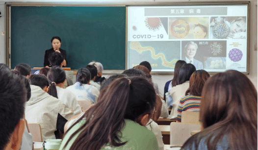 新进教师代表钱静老师在《人体解剖生理学》课程中,深入浅出地讲解了肌肉兴奋与收缩的基本原理,并探讨了肌肉功能在鱼类游动、摄食等过程中的重要作用,引导员工们思考生物体结构与功能之间的关系。新进教师代表李娜老师在《水产微生物》课堂上,详细讲解了病毒的结构、复制过程以及对宿主细胞的影响,并介绍了中国科学家在病毒学领域的研究成果,向员工传递民族自信和文化自信,激发同学们的科研热情。