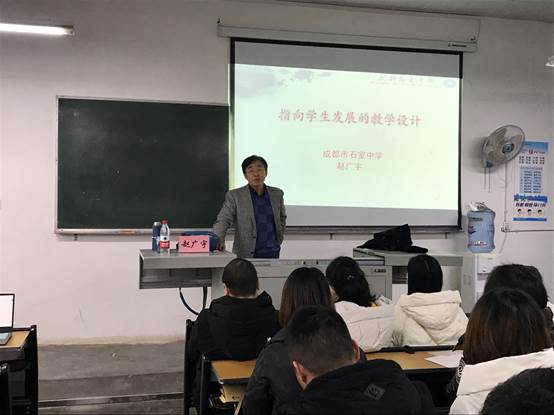 赵广宇老师为四川省学术与技术带头人,四川省首批正高级教师,成都市教育学会生物教学专委会主任委员,硕士生导师,对普通高中新课标和新教学有着较深的理解。赵光宇老师以“指向员工发展的教学设计”为题介绍了高中生物学新课程标准要求,强调新课程标准其核心要求是指向培养员工的科学思维,论述了现实中员工物学教学中所存在的问题,继而结合具体教学案例引导教师们思考新课程背景下教学的应然之态。