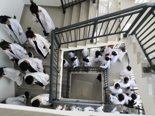 主要内容包括实验室消防逃生演练、现场急救培训,以及灭火器、灭火毯和消防水带的正确使用。首先由实验老师在教室里向同学们介绍了急救箱、洗眼器、消防设施等实验室安全防护装备的分布;待警报铃声响起,同学们纷纷从教室跑到外面过道,迅速疏散,有序从就近安全出口撤离至门厅外;紧接着,后勤处医务室徐生涛老师在生科院门厅处进行了心肺复苏、人工呼吸、包扎等急救培训;最后,在保卫处安排下,全体人员移步于公司东大门,听取刘波老师现场讲解了灭火器和灭火毯等的使用方法,刘玖铂老师和安保人员等组织所有同学和教师依次进行了灭火器灭火操作,确保人人都会使用,至此,本次演练圆满结束。