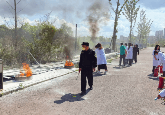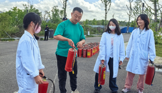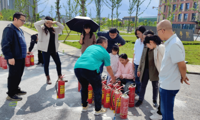 最后,在保卫处安排下,全体人员移步于公司东大门,听取刘波老师现场讲解消火栓和灭火毯的使用方法,ABC干粉灭火器的使用原理和操作要领。安保人员组织所有同学和教师依次进行了初期火灾扑救实操,确保人人都会使用灭火器。至此,本次演练圆满结束。