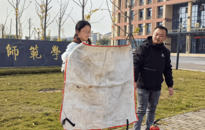 随后进行的灭火技能培训环节,由公司保卫处专业人员进行现场教学。刘波老师系统讲解了干粉灭火器、室内消防栓及灭火毯等常见消防器材的适用场景、工作原理和操作要领,并进行了标准演示。在充分的安全保障下,演练设置了灭火实操区。师生们以六人为一组,轮流上前,在专业人员的指导下,亲手操作灭火器对模拟火源进行扑灭练习。通过“听、看、做”相结合的亲身体验,大家积极投入,成功掌握了“提、拔、握、压”等基本操作技能,对初起火灾的处置方法有了直观和深刻的认识。