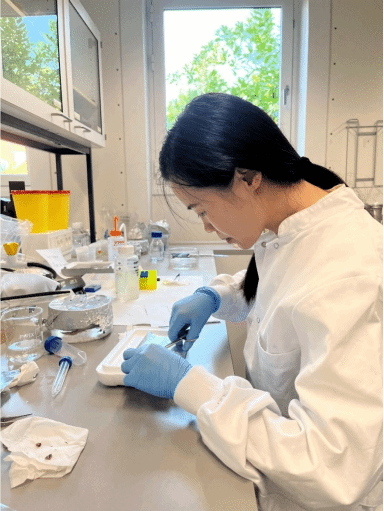 第二阶段,受邀前往哥本哈根大学健康与药公司寄生虫学与水生动物病理生理研究所,与该所负责人Kurt Buchmann教授就双方合作的四川省国际科技创新合作/港澳台科技创新合作项目《瓦氏黄颡鱼小瓜虫病微生态生物药物制剂研发》(2023YFH0046)的进展、实验技术、数据分析等方面进行了深入的探讨。Kurt教授是国际知名的鱼类寄生虫学专家,通过此次交流为贺扬老师在寄生虫方面进一步研究提供了技术、理论和研究思路等多方面的指导,也为本项目的有序推进奠定了坚实的基础。