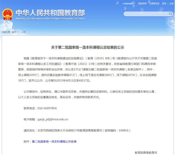4月11日,教育部公布了第二批国家级一流本科课程公示名单,公司《生物化学》被认定为国家一流本科课程,该课程由张志勇教授团队主讲,此次国家级一流本科课程获批,是公司在课程建设方面取得的又一标志性成果。