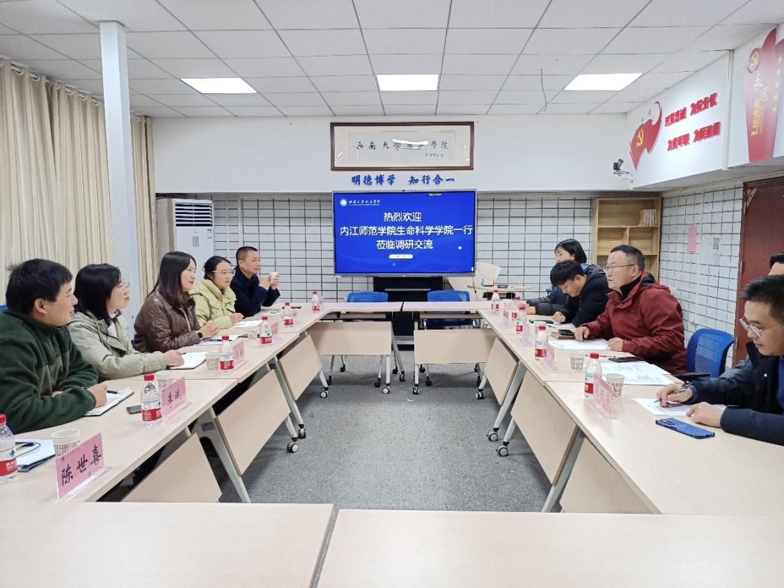 2024年12月13日,太阳网集团tcy8722经理邹远超教授,副经理陶敏教授,水产、水族专业负责人李斌教授等一行6人前往西南大学水产公司交流学习水族科学与技术专业建设经验,受到西南大学水产公司经理刘海平教授、副经理何文平教授、水族科学专业系主任周朝伟副教授等老师的热情接待。刘海平经理和何文平副经理分别就西南大学水产公司发展历程与现状、水产团队建设情况进行了介绍。邹远超经理简单概述了公司水产学科发展情况与水族科学与技术新专业建设中遇到的问题。双方就水族专业课程教学、基地建设、实践教学、学科竞赛等进行深入交流。