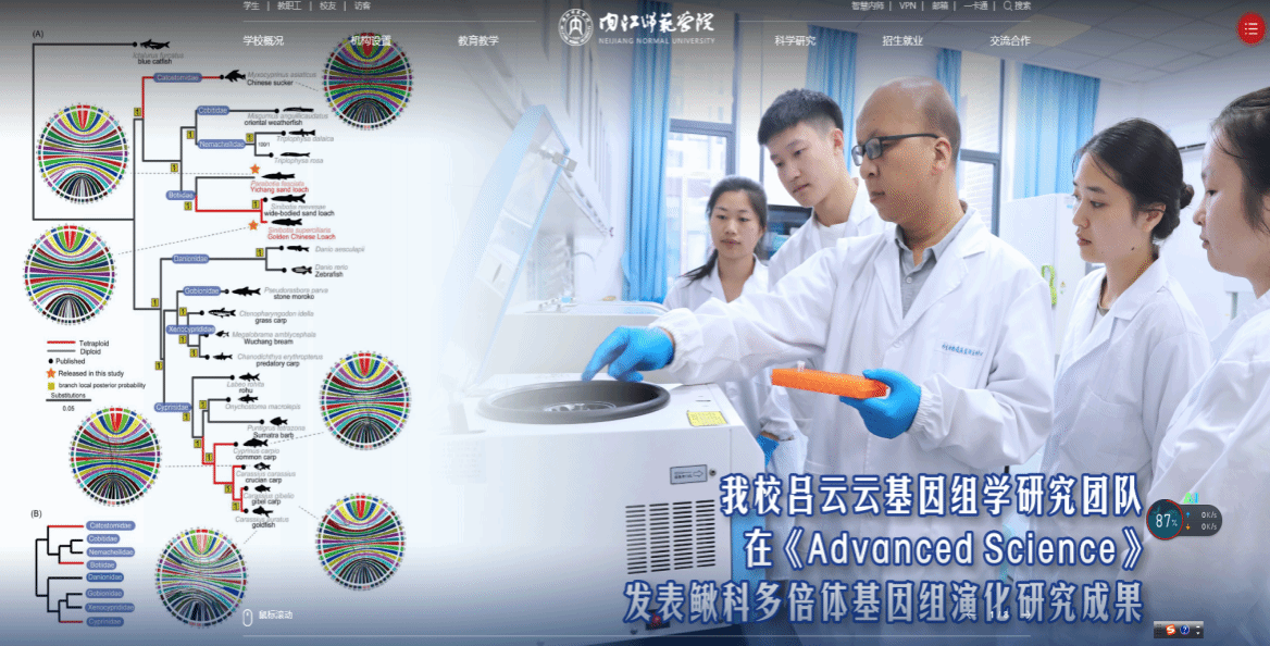 近日,公司教师联合深圳大学、中国科公司水生生物研究所和比利时根特大学在国际权威期刊《Advanced Science》(中国科公司分区1区,综合类Top期刊,影响因子14.1)上发表研究论文《Subgenome Partitioning and Polyploid Genome Evolution in the Loach Family Botiidae (Order Cypriniformes)》。公司教师吕云云与李燕平为论文共同第一作者,吕云云、谢碧文与王永明为共同通讯作者。该论文深入揭示了鲤形目(Cypriniformes)鳅科(Botiidae)鱼类的多倍体基因组演化机制,特别是对中华沙鳅(Sinibotia superciliaris)和花斑副沙鳅(Parabotia fasciatus)进行了系统的比较基因组学分析。