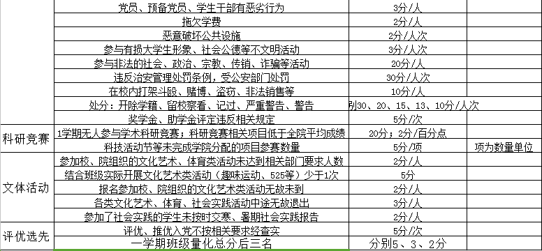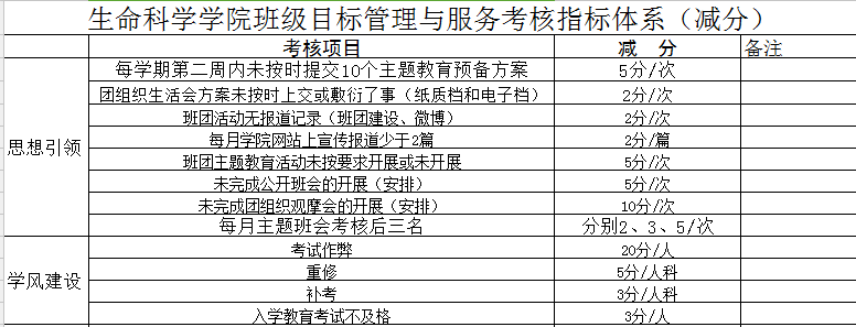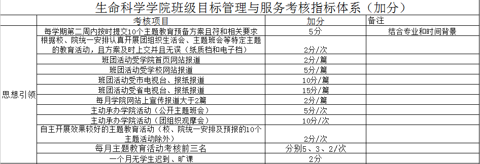 为建设文明和谐的班级体,加强公司学子的自我约束能力,提高班级员工综合发展能力,公司制定了公司班级目标管理与服务考核指标体系(加减分细则),具体如下: