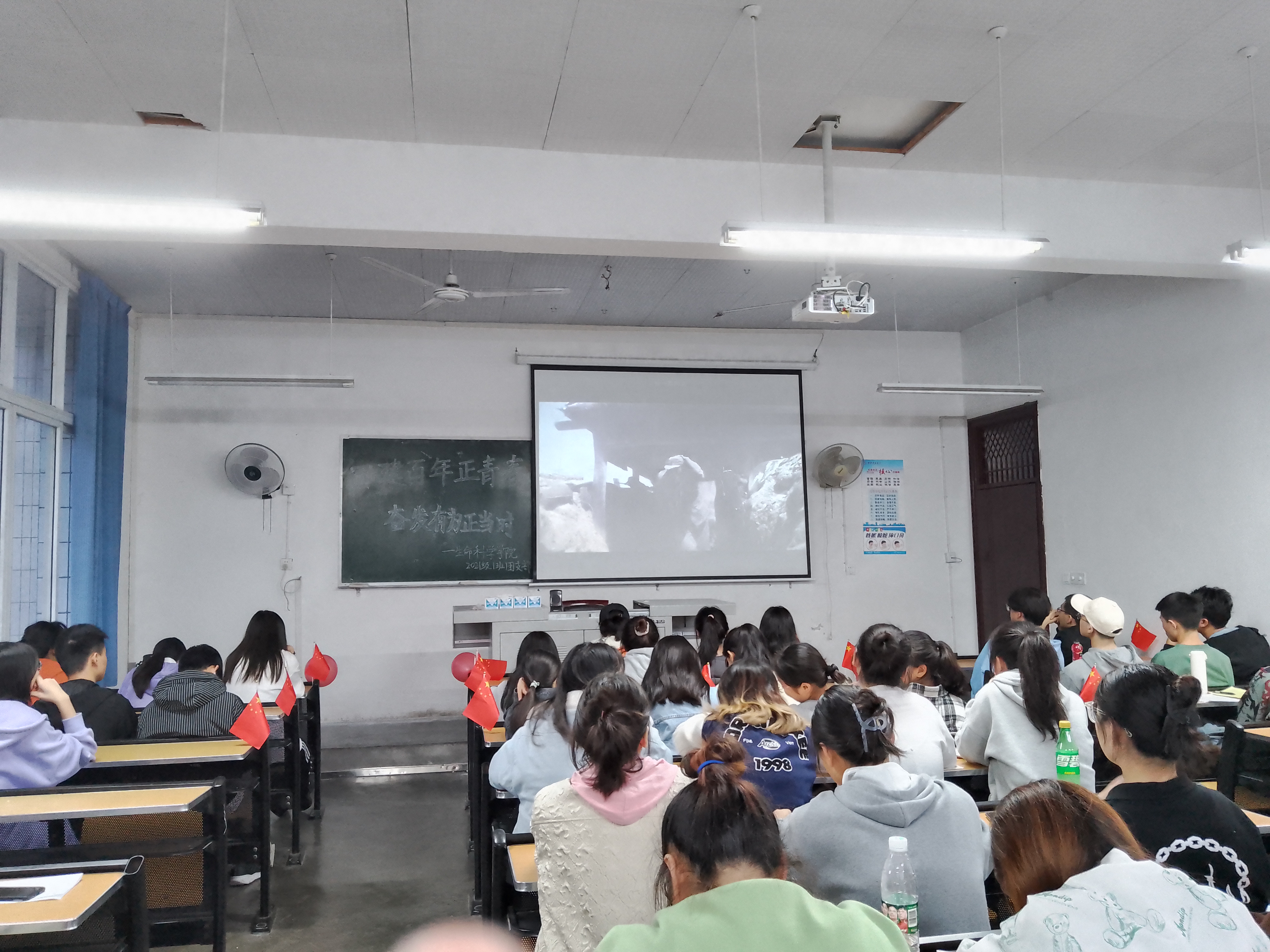 团组织生活会的开始,主持人人首先放映了一个关于庆祝中国共产主义青年团成立100周年的宣传片《共青春》主题曲,一代人有一代人的长征,一代人有一代人的使命,先辈们承担着复兴中国的艰巨任务,打击外敌,修复中国,建设新中国,到今日,从脱贫攻坚到抗击疫情,青年人在行动,青年人在努力,在这个奋发有为的青春里,同学们承担起肩上的重任,建设下一个更好的一百年。团会第二项