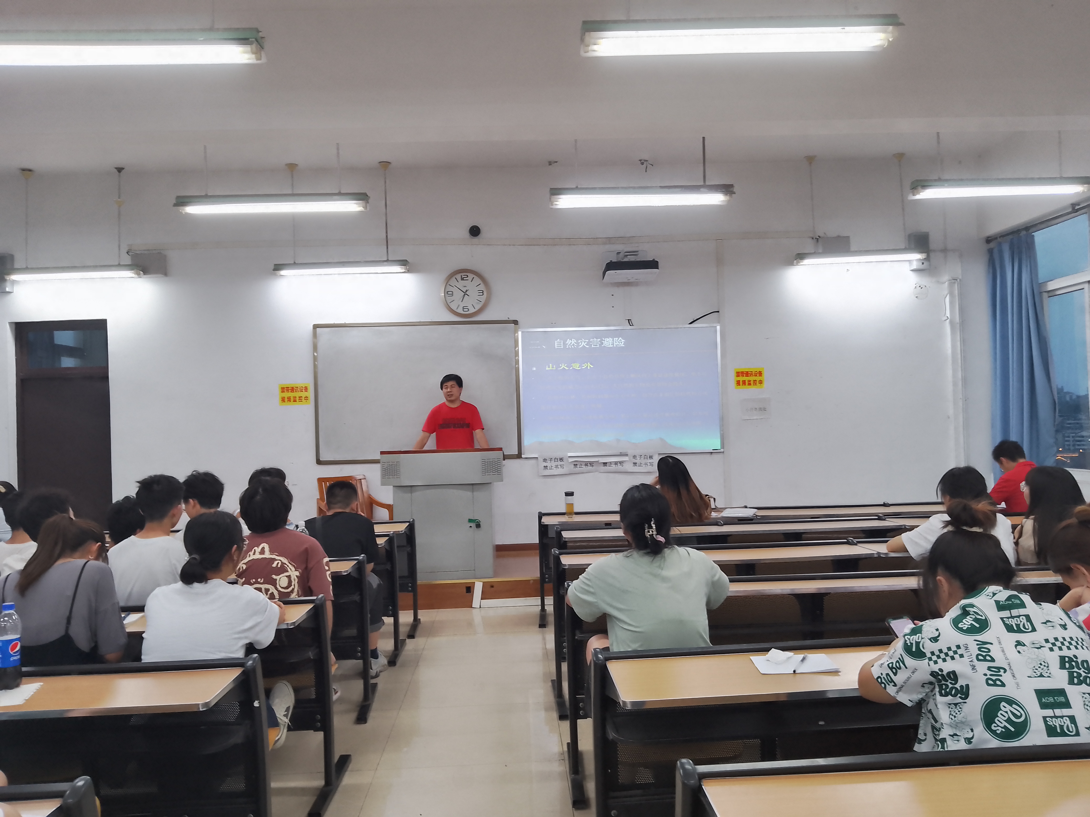 会议的开始,李斌老师向给同学们讲了野外实习安全须知。会议的开始,老师向放出一张地图,标记了世界常绿阔叶林的分布及中国常绿阔叶林的分布,让同学们知道了常绿阔叶林一般情况下生活的地带。接下来列出了同学们应该充分准备的几点。以人为本,预防为主,坚持疫情防控。应具备充足的动物学分类知识,坚持安全第一,跟随队伍,听从指挥,完成此次野外实习,学习到更多动物学相关知识。接下来,给同学们讲述了自然灾害避险,山体塌方泥石流,雷击,山火意外,等的紧急避险方法。为同学们野外实习的安全做了一个有力的保障。第三个是野外动植物伤害预防,主要针对野外的毒蛇,蚊虫咬伤,列举了常见毒蛇,也告诫同学们不能单独行动,不擅自招惹野生动物,涂抹防蚊虫的药。第四个是野外的饮食安全,禁止同学们食用野外野果,保障个人人身安全。接下来是陈发军老师向同学们介绍了野外实习地点--青城山,简单介绍了住宿条件与饮食条件,相关经费及后期考试,实验报告等要求。也重点强调了需要带的东西。向同学们说清楚了相关注意事项。