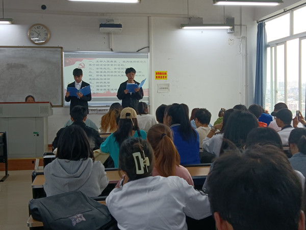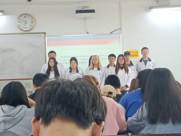 会议伊始。主持人为大家介绍了本次活动的背景和目的。首先,主持人带领全体同学一起奏唱团歌。团歌结束后,由潘晟同学带领大家观看视频,一起了解国家的百年奋斗历史,共青团员应努力把中国共产党的成功经验学习好,传承好,发扬好。接着贺晓雪同学与大家共同学习有关团史的政治演讲,从演讲中感受青年老员工责任与当担,激励同学们做一个斗志昂扬、团结奋进的青年人。接下来是知识问答环节,通过这些知识让同学们对党和团有了进一步的认识。接着进入到最精彩的游戏环节,游戏名为开火车。最后是男生寝室319和女生寝室410带来的歌曲《最初的梦想》,本次团会在愉快的歌声中结束。