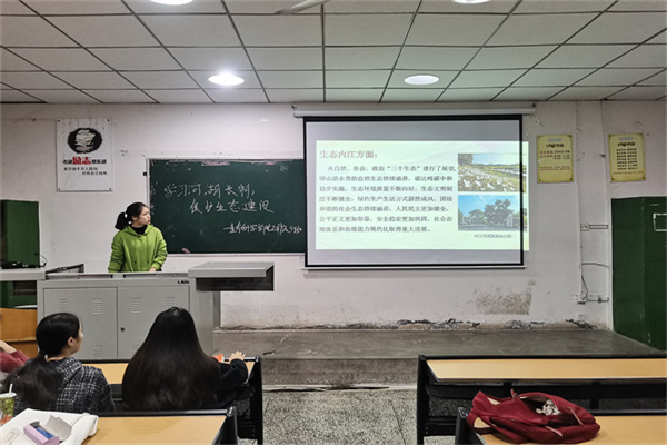 会议来到了第二项。班长李红利用多媒体向同学们介绍了“中国共产党内江市第八次代表大会”,此次大会中提到了融入成渝地区双城经济圈建设是我们肩负的重大使命和面临的最大机遇;“成渝之心”是内江的显著位势和重要优势;在区域发展格局中顺势而为,乘势而上,就能实现追赶跨越、中部崛起等一系列内容。会议来到了最后一项,班长李红为大家宣读了“内江市河湖长制介绍”,文件中指出2017年3月22日,“世界水日、中国水周”内江市“落实绿色发展理念,全面推行河长制”启动仪式举行,标志着内江市全面推行河长制工作正式启动。2017年5月,中共内江市委办公室、内江市人民政府办公室印发《内江市全面推行河(库)长制工作方案》。河长制的任务包括加强水资源保护,全面落实最严格水资源管理制度,严守“三条红线”(确立水资源开发利用控制红线,严格实行用水总量控制;加强河湖水域岸线管理保护,严格水域、岸线等水生态空间管控,严禁侵占河道、围垦湖泊等等。