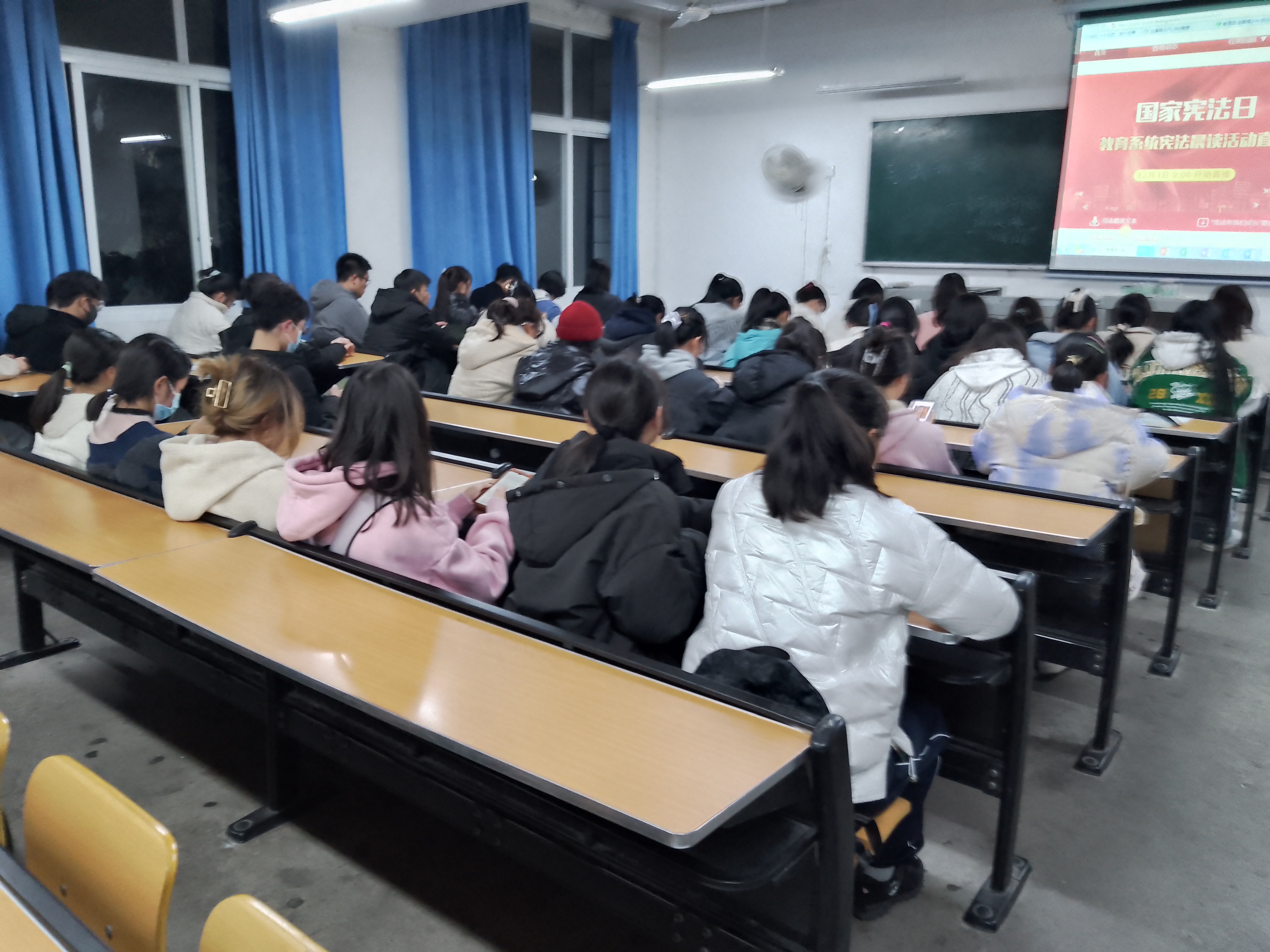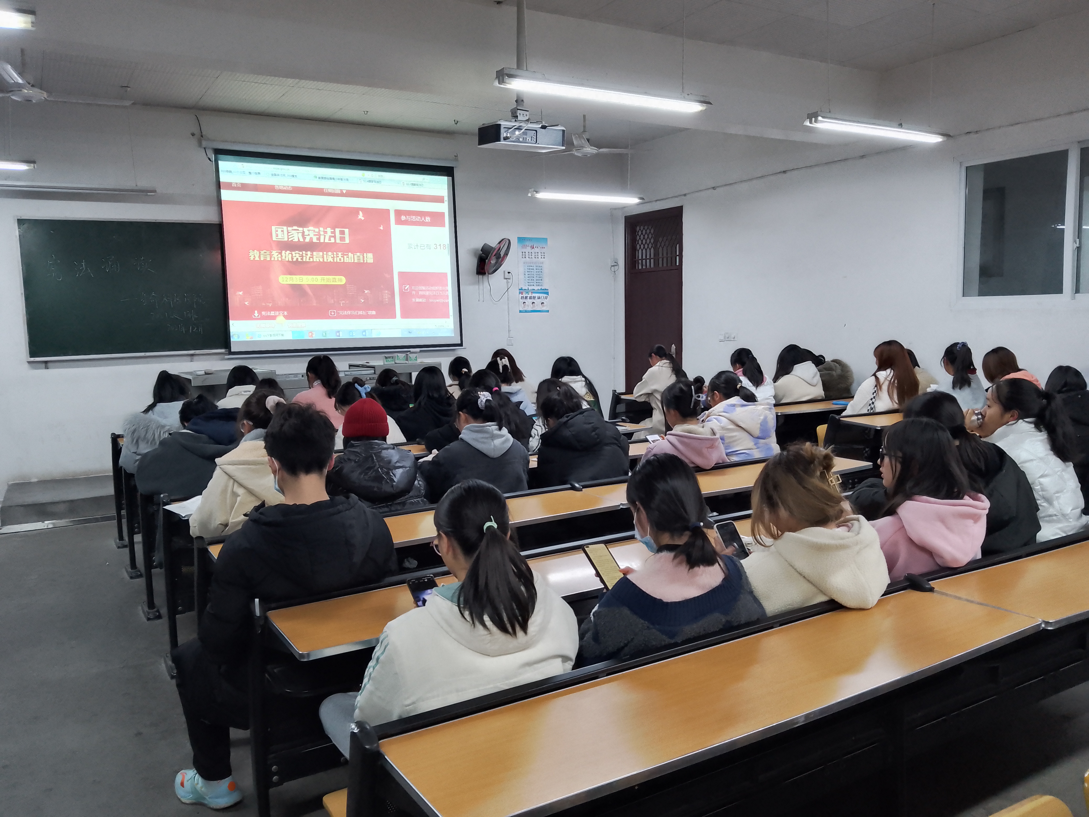 活动开始,班长组织全班同学收听“宪法伴我成长”歌曲,同学们认真收听并学习,跟唱歌曲,班内氛围和谐,接下来是宪法晨读活动,同学们朗诵并理解宪法内容,深刻了解了宪法对于我们的重要性,学习了疫情防控的相关法律法规,全体同学积极参加,深入贯彻普法进校园,做到知法懂法,遵守法律,12月3日9∶00又观看了“国家宪法日教育系统宪法晨读活动日直播”,由教育部领导领读宪法部分条款,现场员工及全体成员跟读,我班通过教育部全国青少年普法网收看网络直播,同步跟读。北京主会场领唱《宪法伴我们成长》歌曲。全体同学跟读。紧接着宣布第六届全国员工“学宪法讲宪法”活动全国总决赛获奖名单,部分优秀员工进行展演出,最后是教育部讲话。我班同学认真收看,并深入学直播内容。