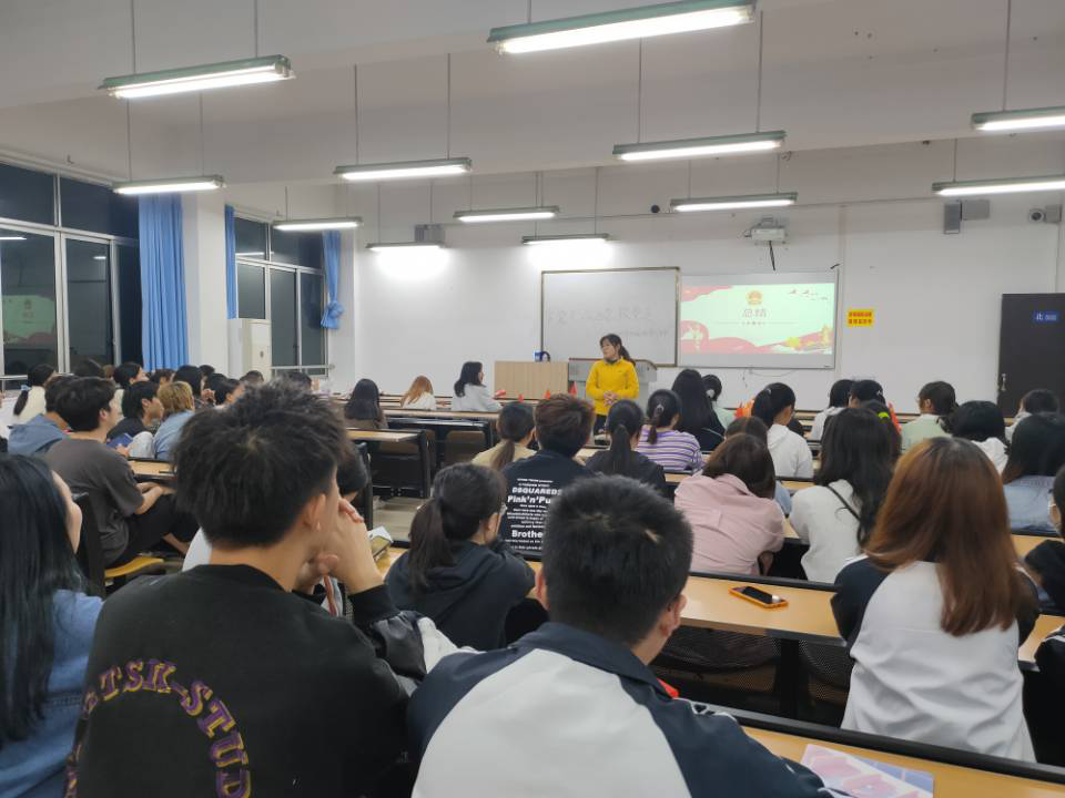 会议伊始,19.3班的同学在主持人的带领下齐唱团歌《光荣啊中国共青团》,在歌声中拉开了会议的序幕。而后,班长为大家讲解中国近代发展历史并观看《开国大典》视频影像,并为同学们介绍优秀党员的光辉事迹。在这个过程中同学们了解了关于党的发展历史以及新中国成立以来在科技、教育、农业、文化等多个领域的重大成就。接着,19.2同学带来的朗读诗歌《团结就是力量》,同学们深刻感受到当初先辈们奋战时的艰苦,感受如今祖国繁荣昌盛的来之不易,当代老员工应厚植爱国主义情怀,学习先烈努力拼搏的精神,树立为祖国为人民赤诚奉献的坚定理想,努力学习,不断进取,以优越的成绩回报先辈、回报祖国、回报社会给我们创造的一切。而后,18.1班的主持人主持人通过知识竞答的方式,带领同学们重温中国共产党的光辉历程,极大的提升了同学们学习党史的积极性,让同学们能够更好地继承和发扬党的优良传统和优良作风。最后,各班班主任的总结了此次主题班会,并对同学们做出了殷切的期望,要志存高远,呼吁大家不忘初心,牢记使命。