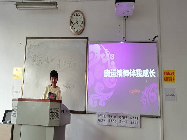 班会伊始,主持人就介绍了本次会议的大致流程,为大家讲述了什么是奥运精神和每一名运动员背后的努力与付出。奥林匹克运动诞生100多年来,奥运会在延续,奥运精神也流传至今,就像奥运圣火的火焰熊熊燃烧、生生不息。每一名能够进入奥运会的运动员们都需要经过层层筛选,因为他们代表的不仅是个人更是一个国家,他们每个人的身上都体现着为国争光的爱国精神、艰苦奋斗的奉献精神、精益求精的敬业精神、勇攀高峰的创新精神、团结协作的团队精神。然后主持人带领着大家学习了几个视频,让同学们领略到了竞技精神的魅力,所有远动员抱着金牌的梦想来到竞技的盛会,一展雄姿,期盼成功,载誉而归,成功者的兴奋、失败者的遗憾、教练与运动员的精神境界在这一刻尽情地展露,所有的观众为之牵动、兴奋、沮丧。所有情绪融汇成一条感情的洪流,不断刷新着人们内心世界的真实感受。班会的最后,主持人带领大家重温了下2008年北京奥运会的开幕式,更让同学们对祖国强大而感到无比骄傲。