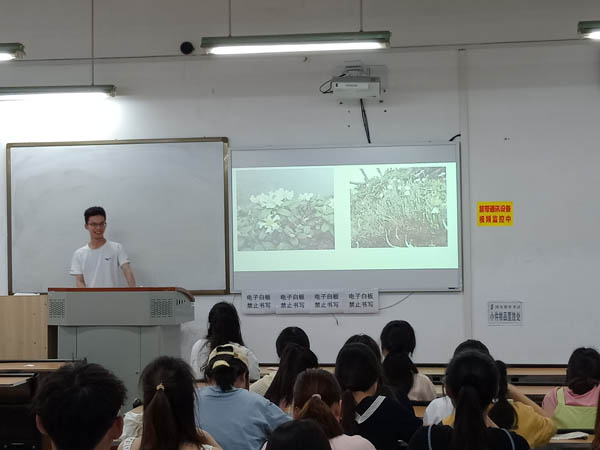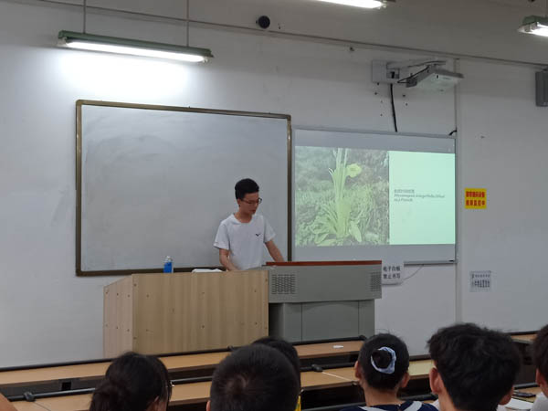 植物是我们生活中不可或缺的部分,无论是在城市中,还是在农村里,植物总是随处可见。植物总是拥有顽强的生命力,为我们的生活带来一片绿色深入认识植物了解植物,是我们作为生科学子所应该做的。班会初始,主持人用一张张生动的图片向同学们展示了他在野外实习中的一些趣事以及遇到的一些特殊的植物,与同学们分享他在野外实习过程中的经验,让同学们对植物野外调查的过程有一定了解,并让同学们从这些图片中了解更多的植物。接着,主持人向同学们介绍了全国中药普查的基本内容,从样本采集、样地调查、药材收集和中药信息处理等四个方面进行讲解,让同学们对其有一定了解,吸引同学们对植物调查的兴趣。之后,主持人又向同学们讲述了植物对于人类的意义,例如植物能够净化空气、保护环境、保持水土、调节自然界的物质循环、杀菌消毒和增强人类免疫力和形成绿色视野等,总之人类的健康生活和自然环境都是离不开植物的,让同学们认识到植物对于人类的重要性,从而激发同学们保护环境的意识。对于大自然来说人类只是沧海一粟般渺小,但是人类的一些不文明行为却能够给自然带来一定的创伤,人类给大自然带去的伤害最终会应验到人类自身,所以爱护植物保护环境是我们义不容辞的责任。