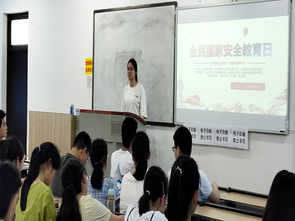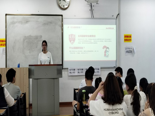 为了让全体员工更多了解国家安全的相关知识,增强国家安全意识,自觉履行维护国家安全,保守国家秘密的义务,我班特于2021年6月24日下午18点整,在五教开展了以“国家安全教育日”为主题的班会活动。由文瑶担任此次班会的主持人,本次班会由班主任杨雪娜老师和2018级1班全体成员共同参与。
