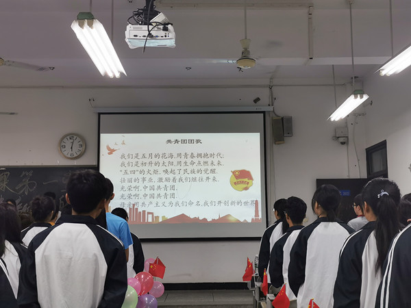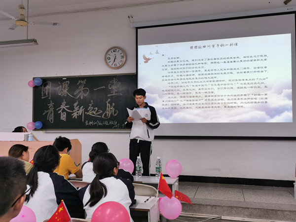 活动伊始,全体同学起立奏唱中国共青团团歌。随后短片《最好的那一年》带同学们走进了凉山州普格县,让同学们了解到了这群来自天南地北的研究生支教员,是怎样在平凡的一年中,肩负起了不凡的青春使命,而后主持人邀请到了两位同学分享了自己的心得感悟。“少年强则国强,少年独立则国独立。”这正是班上几位男同学朗诵的《少年中国说》。从天府之国到国际四川,百年间我们脚下这片热土之上,代代成长的青年们,同样与时代碰撞出了绚丽火花,四川青年,一直行走于时代前列,奔赴在服务人民、建设祖国的道路上。接下来,由我班八名女生为大家带来歌曲《国家》,歌声中表达了她们对祖国的骄傲与自豪。紧接着到了知识竞答环节,主持人刚宣读完题目,同学们纷纷举起了手,踊跃参与活动,现场气氛瞬间活跃了起来。最后,全体同学起立歌唱《我和我的祖国》,至此,本次以“团课第一堂,青春新启航”为主题的团组织生活会圆满结束。