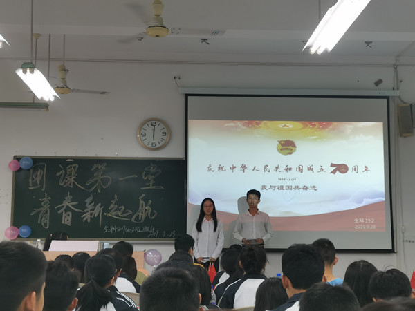 为了庆祝中华人民共和国成立70周年,公司2019级2班专业全体成员于2019年9月28 日晚上19:00在第五教学楼304教室举行了以“团课第一堂,青春新启航”为主题的团组织生活会。本次团组织生活会由周润、杨兰两位同学共同主持,2019级2班全体同学参加。