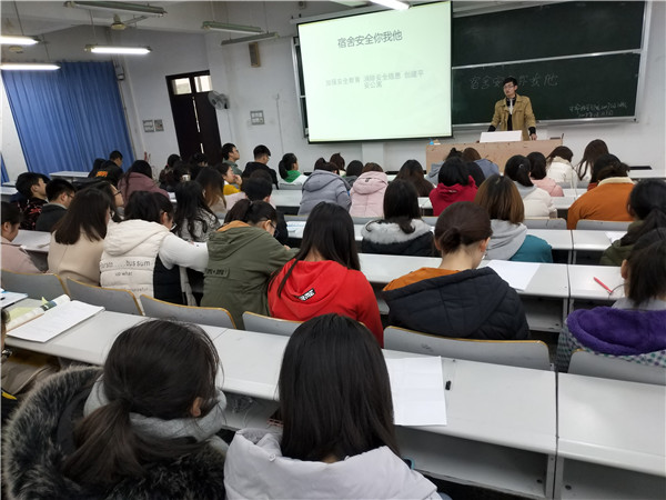 切实增强员工的宿舍安全防范意识和避险潜力,保障员工安全,12月1日晚7点生科太阳网集团tcy87222017级1班在五教北401举办了主题“宿舍安全你我他”班会。此次班会是由张照峰同学主持,参与此班会的有班主任李清敏老师以及2017级1班全体同学