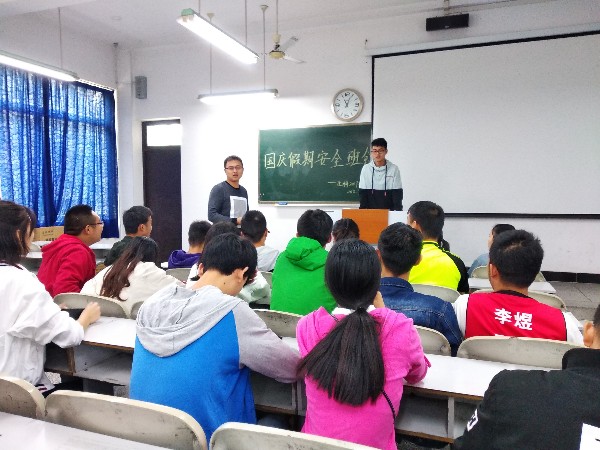 此次会议中,班主任王均老师和班长潘峰高度强调了国庆放假期间的安全问题。就此,班长潘峰还具体举了防盗防抢防骗、交通工具的选择,用火用电等例子加以说明,让同学们有充分的准备去应对一系列可能存在的安全问题。