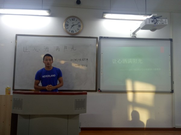 为使同学们懂得同学之间如何相处,培养员工人际交往的能力。促进同学们相处关系的发展,增进班级感情。我班于2018年5月25日晚七点整在五教北703教室开展了主题为“让心洒满阳光”的主题班会。此次会议由苟印同学担任主讲人,班主任王均老师以及三班全体同学参加了此次主题班会。