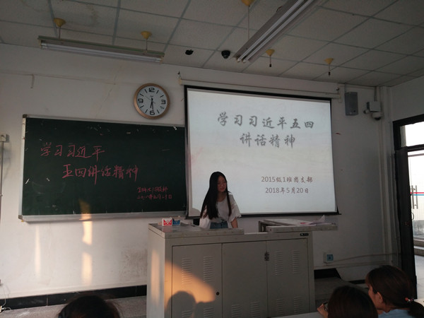 主持人讲解完毕后,班长涂永燕同学为我们强调了我们身上的责任和使命,以及习近平主席讲话中对我们青年提出的要求。此次主题班会圆满结束。