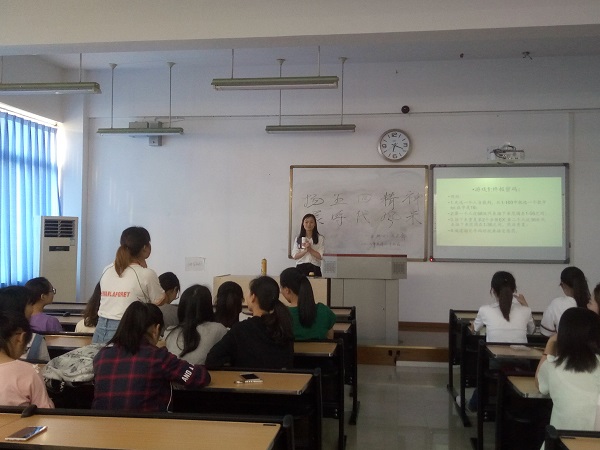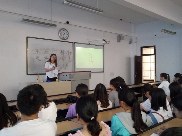 首先,主持人李霞同学简明地为同学们解释了五四精神指的就是“彻底地、不妥协地反帝反封建的爱国精神”,爱国主义是五四精神的源泉,民主与科学是五四精神的核心。