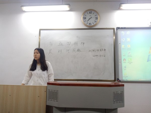 为了解五四运动的起源以及先驱者, 并对这个属于我们广大青年人的节日有一定认识和感悟。我班于2018年5月27日晚七点整在五教北703教室开展了主题为“扬五四精神,展时代风采”的团组织生活会。此次会议由贺思佩同学担任主讲人,班主任王均老师以及三班全体同学参加了此次团组织生活会。