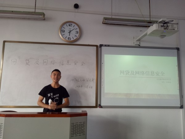 为树立正确的价值观、理性的消费观,有效防范校园网贷风险,增强网络借贷风险防范意识,拒绝高消费、禁止铺张浪费、引导员工树立理性消费观念。我班于2018年5月6日晚六点在五教北703教室开展了主题为“网贷及网络信息安全”的主题班会。此次会议由女生312寝室和男生319寝室共同完成,且此次会议由主讲人王成鑫同学担任,班主任王均老师以及三班全体同学参加了此次主题班会。