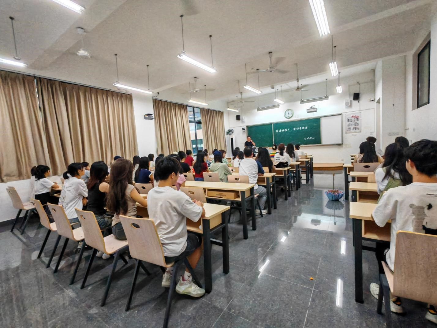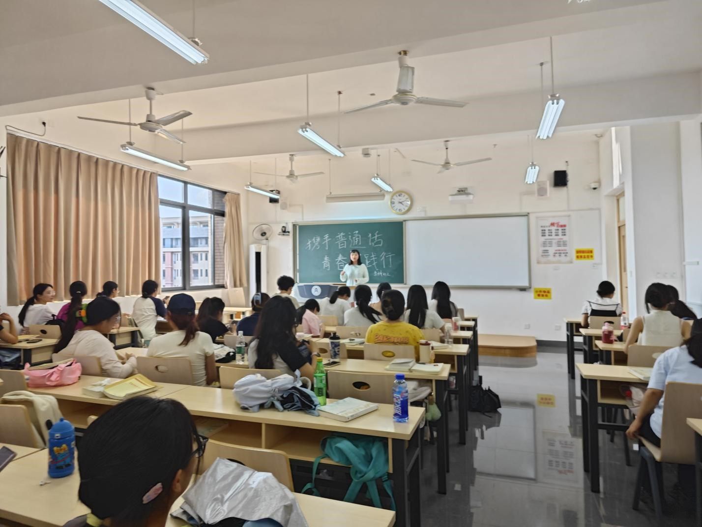 为全面贯彻国家语言文字方针政策和法律,大力推广和规范使用国家通用语言文字,公司于9月16日至9月21日各班级在明德楼陆续开展“推普宣传”主题班会,此次活动公司师生一同参与。