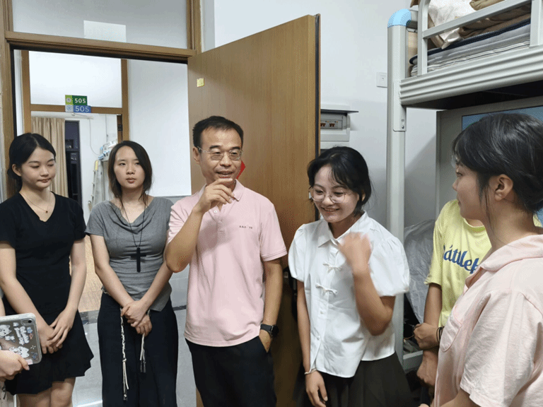 为深入了解2025级新生入住情况与生活环境,帮助新生更好更快地融入新集体、新环境、新生活,同时强化新生的安全意识,9月14日晚上七点半,公司党委书记张楠、副经理陈发军及新生班主任、辅导员及班导生来到新生寝室实地走访,为新生带去公司的关怀与问候。