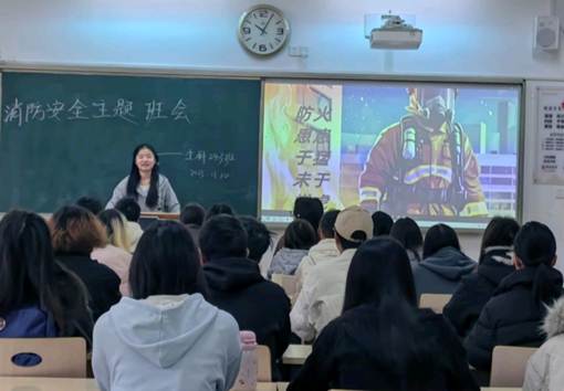 各班在明德楼教室开展“消防安全”主题班会,以警示教育短片切入,通过校园宿舍违规用电起火、实验室易燃试剂操作不当等典型案例,结合事故追责分析,直观呈现消防疏忽的严重后果。接着,各班围绕“校园消防隐患排查”“火场逃生技巧各班”“消防器材使用”三大板块展开讲解,重点强调宿舍禁用大功率电器、定期检查插线板,实验室易燃试剂分类存放、实验后断电断气等安全规范,并通过观看灭火毯使用视频,总结出“看标识、懂操作、会避险”的消防三要点。最后进入互动环节,同学们分组进行情景问答,就“浓烟中如何判断逃生方向”“发现火情后先报警还是先自救”等问题展开思辨,同时还分享家庭及校园消防注意事项。