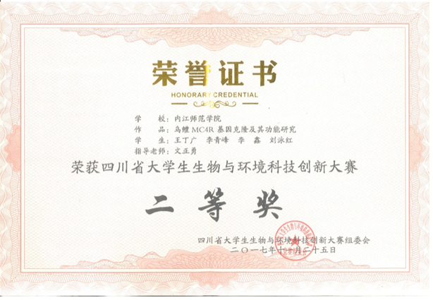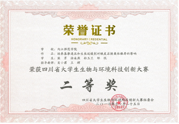 此次比赛,公司共10件作品参赛,最终获得二等奖3项(《乌鳢MC4R基因克隆及功能研究》,指导老师:文正勇 成员:王丁广、李青峰、李鑫、刘泳红;《长身鳢线粒体基因组特征及系统发育分析》,指导老师:文正勇 成员:王刚、钟佳孟、杨靖财、付豪;《培养基渗透压和生长延缓剂对铁皮石斛离体保存的影响》,指导老师:王辉 成员:熊芹、涂永燕、孙玉兰、邹悦)、三等奖3项(《急性双酚A胁迫对稀有鮈鲫幼鱼鳃、肝脏和肾组织结构的影响》,指导老师:史晋绒 成员:刘玉玲、何思懿、陈林、严林;《春季城市中华蜜蜂的食物结构与蜂蜜金属元素含量》,指导老师:陈发军 成员:赵琳滟、赵岳祥、张敏、刘婷;《重金属离子对长江上游特有鱼类——鲈鲤的急性毒性作用及安全浓度的研究》,指导老师:袁登越 成员:赵明、唐涛、杨文丹、曾红玲)的好成绩。