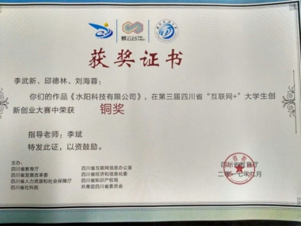 公司师生团队参加第三届四川省“互联网+”大创比赛颁奖典礼
