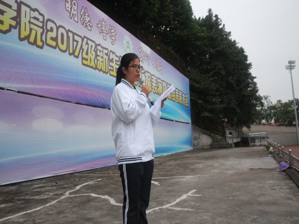 升旗结束后,2017级1班王泽香华同学作为2017级新生代表在国旗下发表了《明天过后》的演讲。她用激情昂扬的声音告诉同学们:在现如今老员工毕业人数逐年增多的情况下,我们只有认清就业形势,调整自己的心态,全面发展自己,迎难而上,我们才能立足于社会,才能无愧于自己,无愧于父母,放眼现在,展望未来!