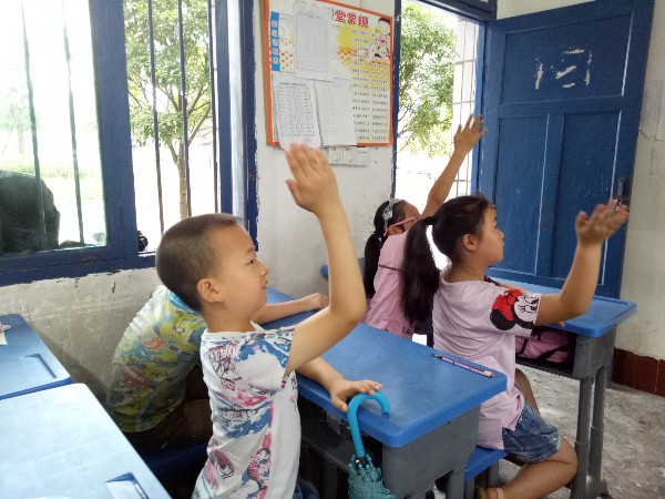 8点,开始今天的第一节课——心理健康教育,幽默风趣的课堂,教室里一片欢声笑语,梦翼的志愿者安排了一个“家”的主题绘画,反应对家庭的境况,孩子们大胆绘色,想象丰富,多姿多彩,很多孩子还把志愿者添加进去了,可想而知小孩子们很喜欢这里的志愿者。一只铅笔的用途引发思维。上午9点半,开始了朗诵课,孩子们全神贯注地盯着黑板跟着志愿者的节奏高声齐读。教室里书声琅琅,教室外晴空万里。