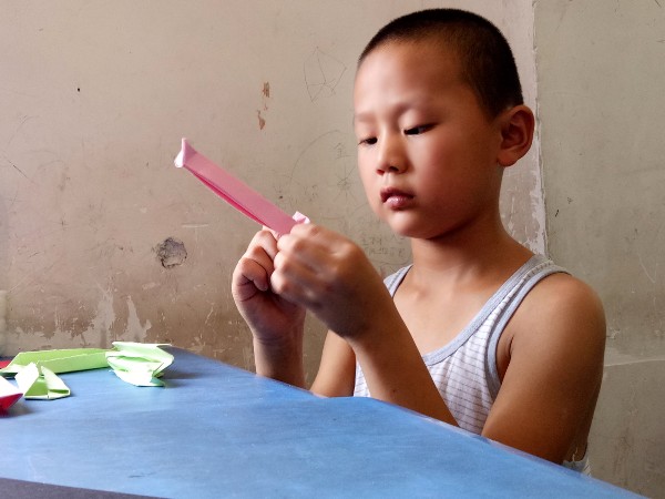 下午3点,孩子们拿到彩色卡纸兴奋不已,激动万分,跟着志愿者的步骤,一双双灵巧的小手将彩纸折叠着,耐心的把每一个角、每一条边,都要求自己做到最完美,一步一步接近目标,一分耕耘一分收获,看到自己的劳动成果,一个个欢笑着对比着,都觉得自己的最美好,最后志愿者让孩子们为自己的努力鼓掌。下午4点,是辅导假期作业,孩子们认真做着作业,举着手询问不懂的题,时间转眼即逝,一眨眼便到了放学时分。